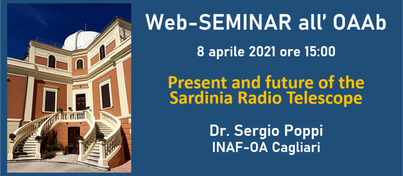 Giovedì 8 aprile alle ore 15:00, il dr. Sergio Poppi dell’INAF Osservatoro Astronomico di Cagliari, terrà il web-seminar dal titolo: Present and future of the Sardinia Radio Telescope.